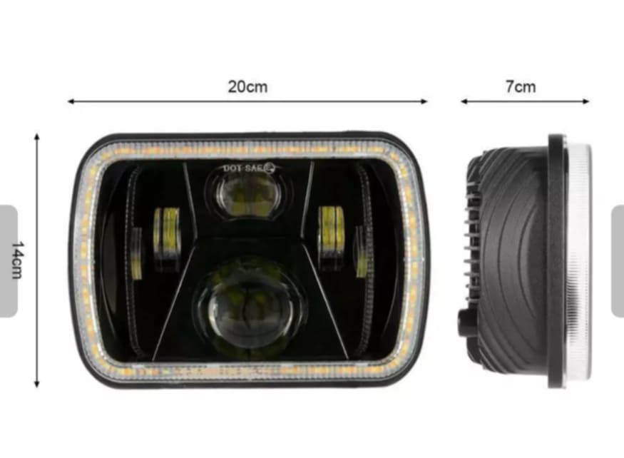 image Комплект От 2бр. Универсален 60W ЛЕД LED Фар Лампа Халоген 12V-24V Къси/Дълги С DRL Дневни Светлини Мигач Бяло-Жълто 20 X 14cm